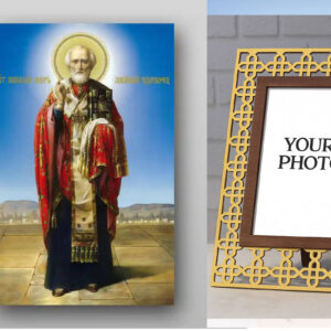 Εικόνα Ορθοδοξίας Πολυτελείας με σχεδιο Σταυρούς μαζι με Βάση σε 8 χρώματα με περίγραμμα χρυσό σε ξύλο Plywood (Πλακάζ) με βάση Εικόνα του Αγίου Νικολάου - Χειροποίητη Ελληνορθόδοξη , Κρεμαστή πλάκα βυζαντινής τέχνης, χριστιανική τέχνη Διάσταση 21x15 cm (8,3 x 5,9 ίντσες) INTRAEK3kadro3211-321192