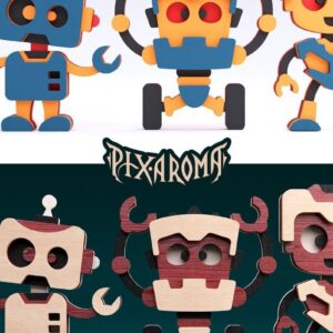 Intra απο ξύλο plywood Χρώμα wenge 3mm-4mm πάχος - Χαριτωμένα ρομπότ | λέιζερ με 3D επίπεδα Δίασταση 20x20 cm INTRAFABR-111885053