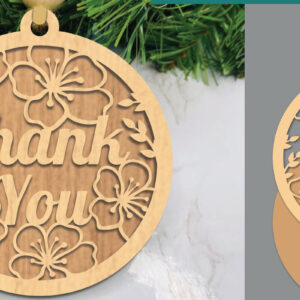 Intra απο ξύλο plywood 3mm-4mm πάχος - Floral Ευχαριστώ Laser Cut Στολίδι Δίασταση 6x6 cm INTRAFABR-109410511