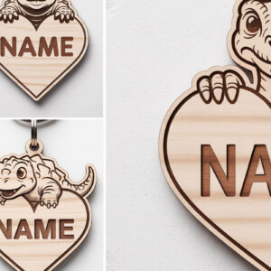 Intra απο ξύλο plywood 3mm-4mm πάχος - Μπρελόκ Όνομα Καρδιάς Δεινοσαύρου Δίασταση 4x4 cm INTRAFABR-122738153