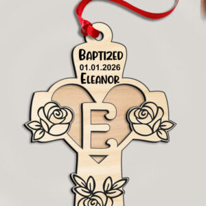 Intra απο ξύλο plywood 3mm-4mm πάχος - Σταυρός τριαντάφυλλο γράμμα E λέιζερ Δώρο στολίδι Δίασταση 6x6 cm INTRAFABR-116749470