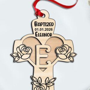 Intra απο ξύλο plywood 3mm-4mm πάχος - Σταυρός τριαντάφυλλο γράμμα M Laser Δώρο Στολίδι Δίασταση 6x6 cm INTRAFABR-116857514