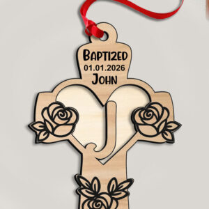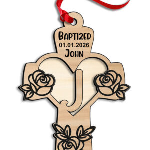 Intra απο ξύλο plywood 3mm-4mm πάχος - Σταυρός τριαντάφυλλο γράμμα J στολίδι λέιζερ δώρου Δίασταση 6x6 cm INTRAFABR-116753096