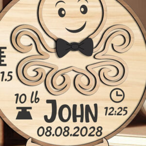 Intra απο ξύλο plywood 3mm-4mm πάχος – Octopus Baby Ανακοινώσεις Στρογγυλός πίνακας Δίασταση 45x45 cm INTRAFABR-117037357