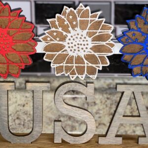 Intra απο ξύλο plywood 3mm-4mm πάχος – Patriotic Sunflowers Shelf Sitter Δίασταση 20x20 cm INTRAFABR-28685052