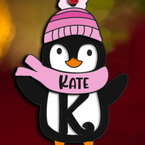 Intra απο ξύλο plywood 3mm-4mm πάχος – Penguin Letter K Γιορτινό στολίδι Δίασταση 20x20 cm INTRAFABR-109528921