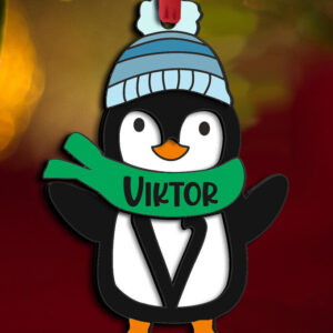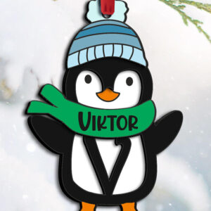 Intra απο ξύλο plywood 3mm-4mm πάχος – Penguin Letter V Holiday Ornament Δίασταση 20x20 cm INTRAFABR-109613264