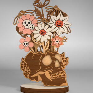 Intra απο ξύλο plywood 3mm-4mm πάχος – Skull Vase Flowers Table Δίασταση 20x20 cm INTRAFABR-110253337