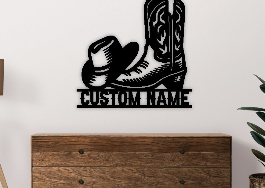 Intra απο ξύλο plywood 3mm-4mm πάχος – Western Cowboy & Cowgirl Boots Metal Art Δίασταση 20x20 cm INTRAFABR-97684357