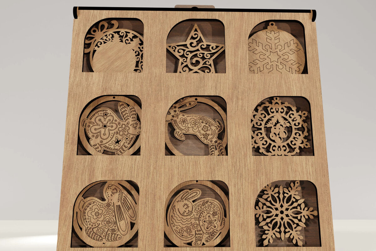 Intra απο ξύλο plywood 3mm-4mm πάχος – X-Mas 9 στολίδια με κουτί παρουσίασης Δίασταση 20x20 cm INTRAFABR-104664319