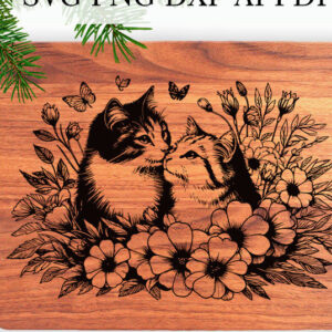 Intra απο ξύλο plywood 3mm-4mm πάχος – Δύο γάτες ερωτευμένες με χαρακτικά λουλουδιών Δίασταση 20x20 cm INTRAFABR-110835601