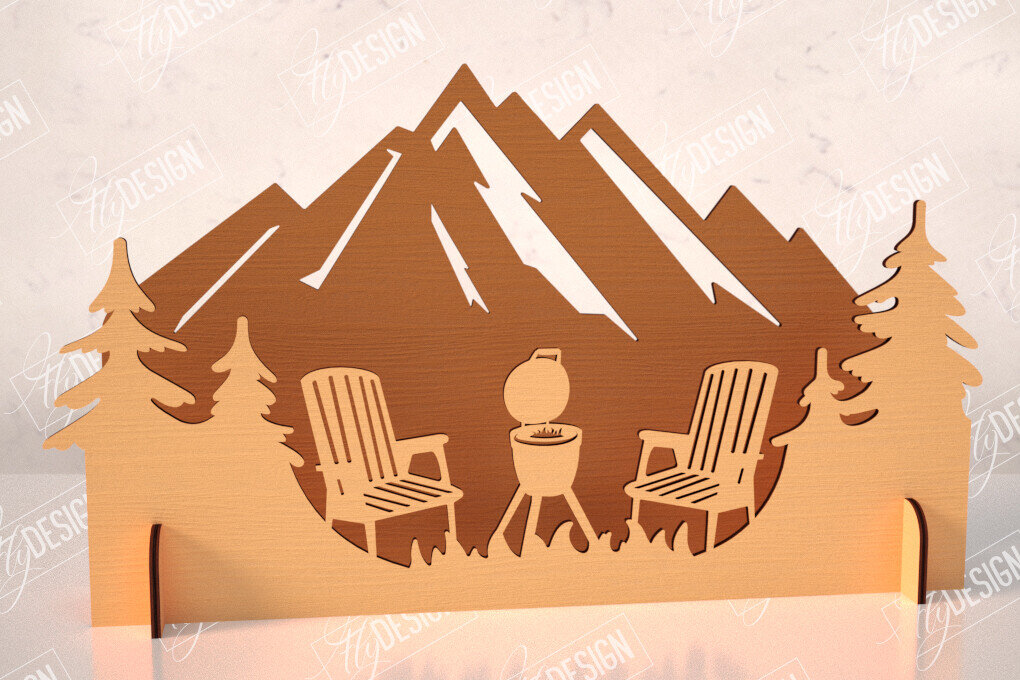 Intra απο ξύλο plywood 3mm-4mm πάχος 3D Camping Scene |Adventure Vibe| Πεζοπορία Δίασταση 30x20 cm INTRAFABR-114250034