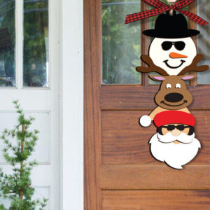 Intra απο ξύλο plywood 3mm-4mm πάχος – Κρεμάστρα πόρτας Άγιος Βασίλης, Ελάφια και Χιονάνθρωπος Δίασταση 20x20 cm INTRAFABR-120779427