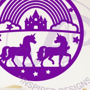 Intra απο ξύλο plywood 3mm-4mm πάχος – Μονόκεροι και σημάδι τέχνης τοίχου ουράνιου τόξου Δίασταση 40x30 cm INTRAFABR-118702687