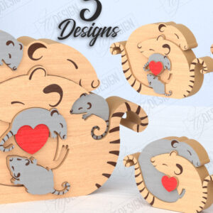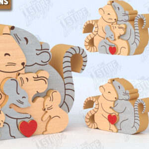 Intra απο ξύλο plywood 3mm-4mm πάχος – Πακέτο κοπής με λέιζερ παζλ Rats Family | CNC Δίασταση 20x20 cm INTRAFABR-119955341