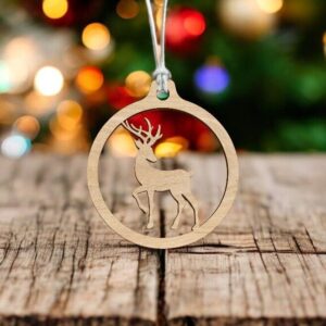 Intra απο ξύλο plywood 3mm-4mm πάχος – Μπιχλιμπίδι χριστουγεννιάτικου δέντρου κύκλου και ελαφιού 12x15 cm INTRAVECTRY-MY550287