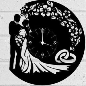 Intra απο ξύλο plywood 3mm-4mm πάχος – Πρότυπο ρολογιού τοίχου δίσκων βινυλίου για ρομαντικό ζευγάρι 40x45 cm INTRAVECTRY-MY560810