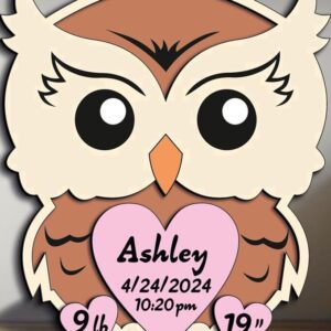 Intra απο ξύλο plywood 3mm-4mm πάχος – Πινακίδα ανακοίνωσης γέννησης νεογέννητου μωρού κουκουβάγιας Δίασταση 20x20 cm INTRAFABR-103245642