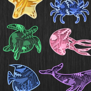 Intra απο ξύλο plywood 3mm-4mm πάχος – Πακέτο με στρώματα Ocean Animals Δίασταση 20x20 cm INTRAFABR-119058688