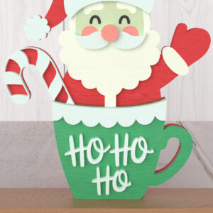 Intra απο ξύλο plywood 3mm-4mm πάχος – Χριστουγεννιάτικη διακόσμηση Santa in Cup με λέιζερ Δίασταση 20x20 cm INTRAFABR-107875644