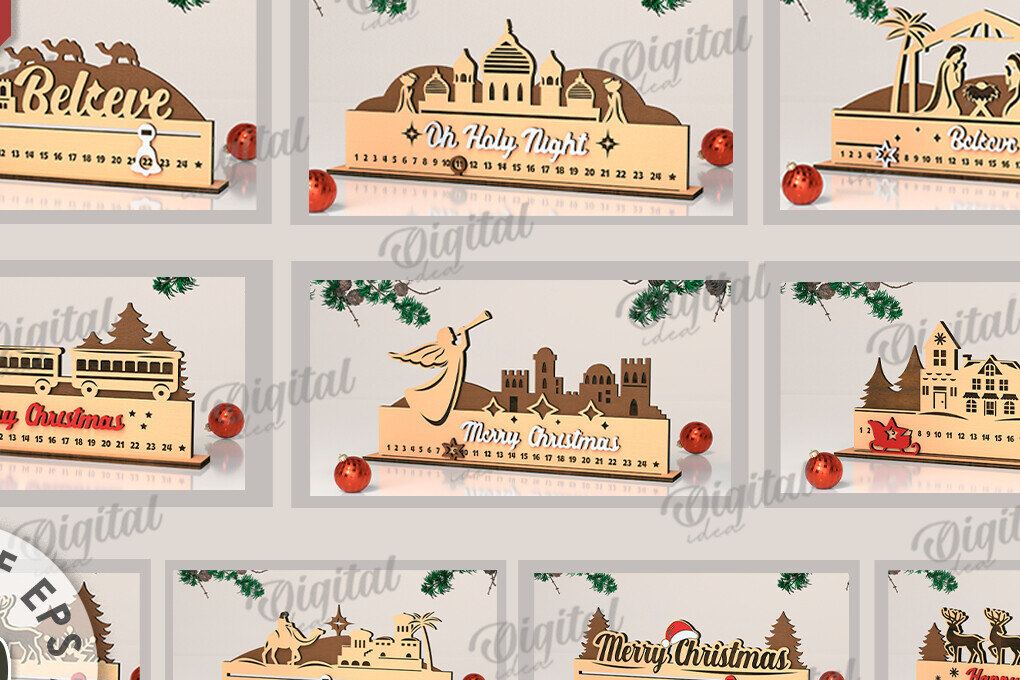 Intra απο ξύλο plywood 3mm-4mm πάχος – Πακέτο κοπής με λέιζερ XMas Advent Calendars Δίασταση 20x20 cm INTRAFABR-108044104