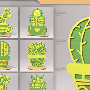 Intra απο ξύλο plywood 3mm-4mm πάχος – Πακέτο κοπής χυμώδους λέιζερ. 3D Κάκτος Δίασταση 20x20 cm INTRAFABR-83504396