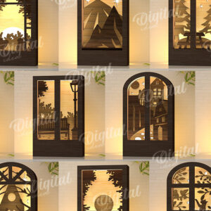 Intra απο ξύλο plywood 3mm-4mm πάχος – Παράθυρο Led Nightlights Πακέτο κοπής με λέιζερ Δίασταση 20x20 cm INTRAFABR-107963362