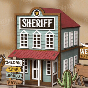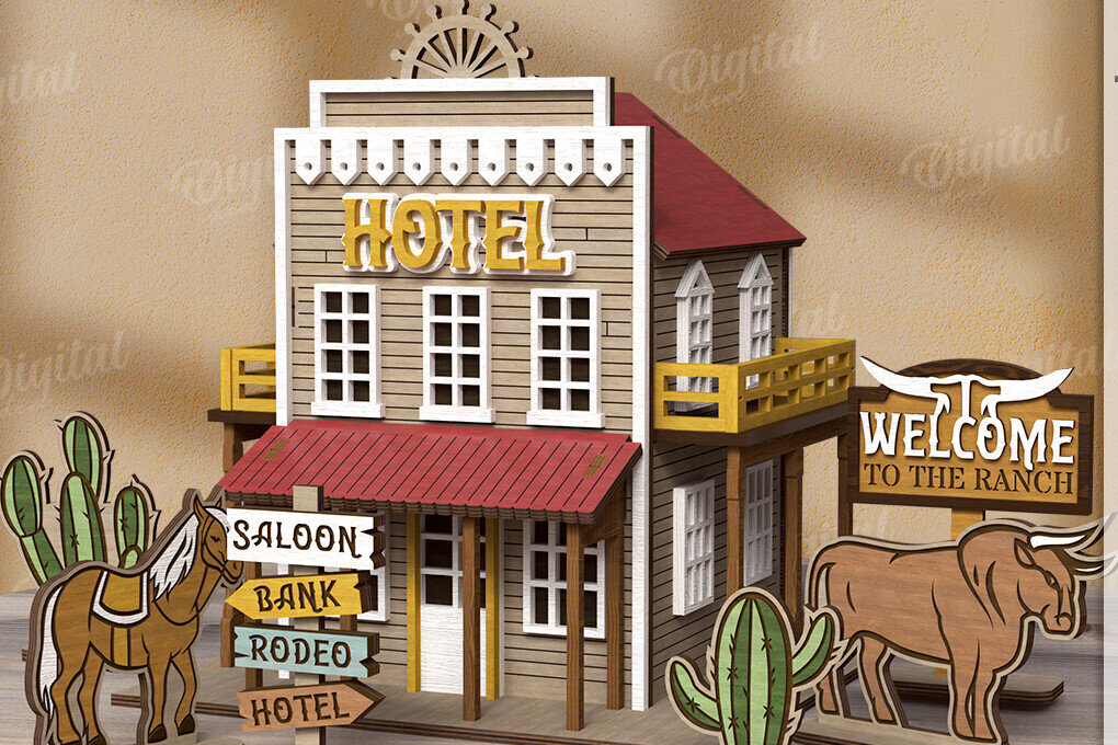 Intra απο ξύλο plywood 3mm-4mm πάχος – Περικοπή με λέιζερ Wild West Town Δίασταση 20x20 cm INTRAFABR-123620574