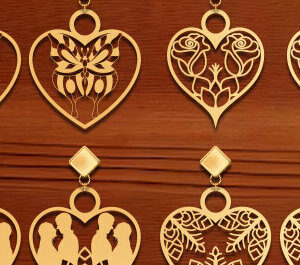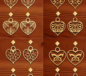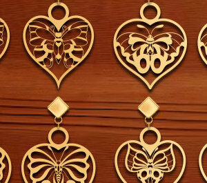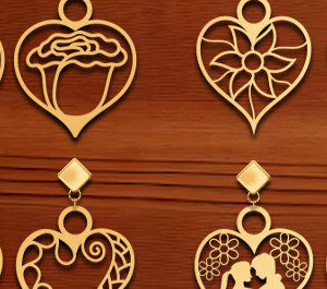 Intra απο ξύλο plywood 3mm-4mm πάχος – Σκουλαρίκι δάκρυ με καρδιές Δίασταση 5x5 cm INTRAFABR-15595876