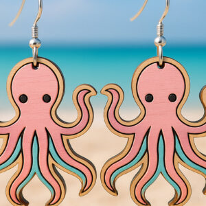 Intra απο ξύλο plywood 3mm-4mm πάχος – Σκουλαρίκια Octopus Cute Art Δίασταση 5x5 cm INTRAFABR-123757357
