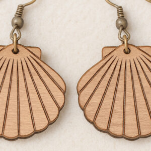 Intra απο ξύλο plywood 3mm-4mm πάχος – Σκουλαρίκια Scallop Shell Cut Laser Δίασταση 5x5 cm INTRAFABR-120914442