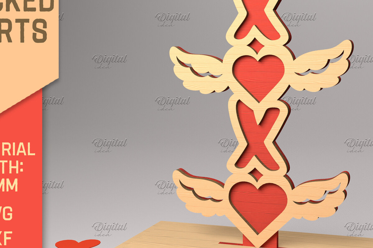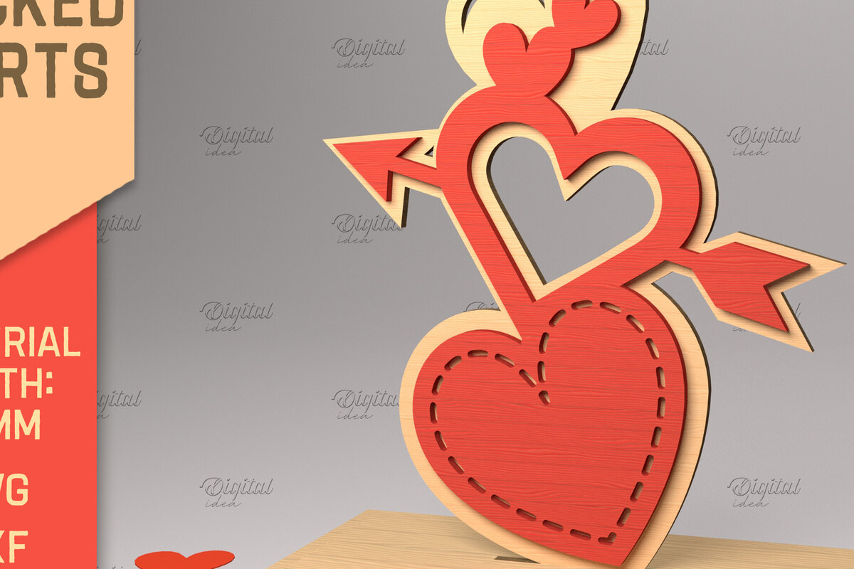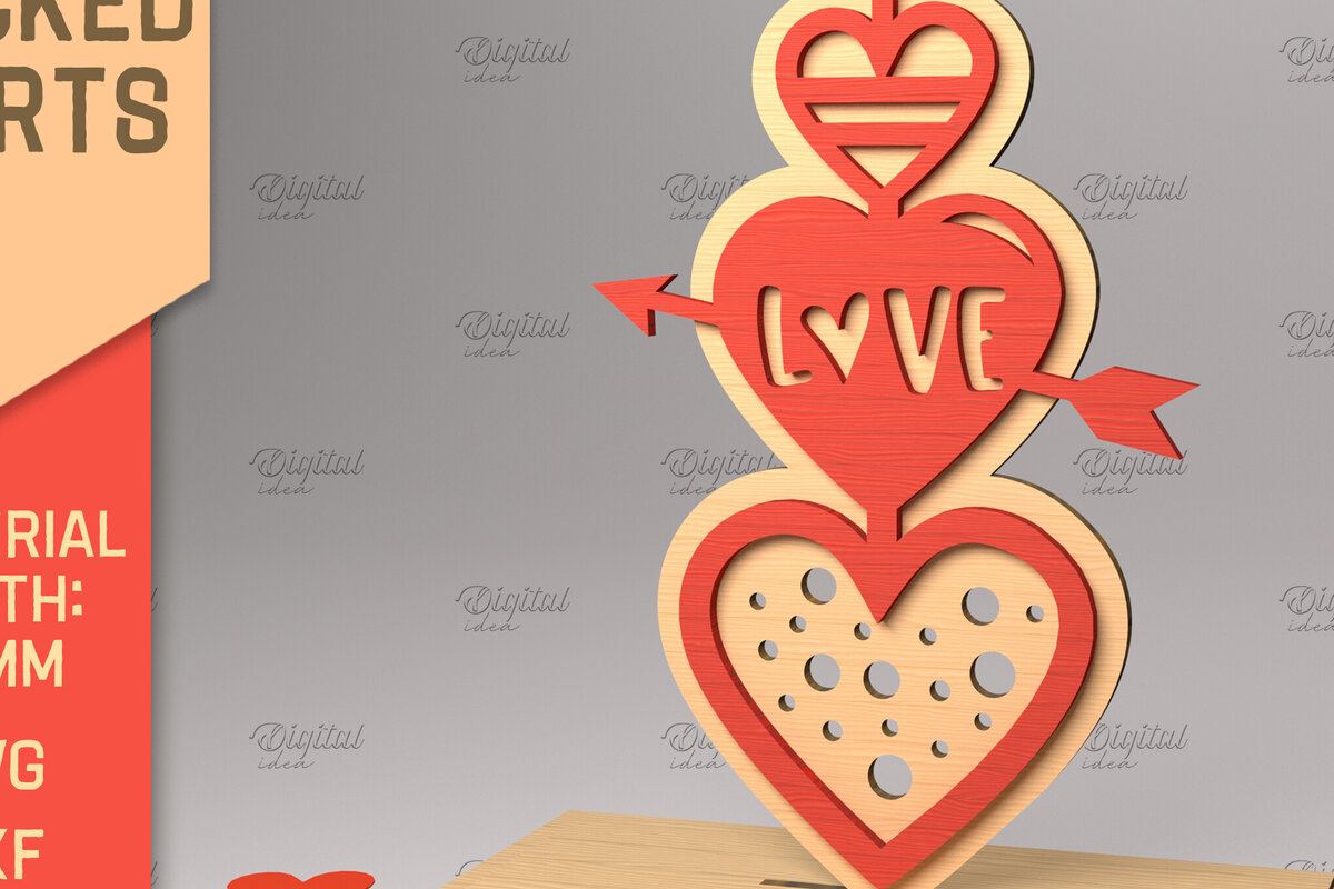 Intra απο ξύλο plywood 3mm-4mm πάχος 3D στοιβαγμένες καρδιές. Βαλεντίνου με στρώσεις Δίασταση 15x15 cm INTRAFABR-83740758