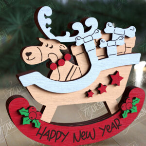 Intra απο ξύλο plywood 3mm-4mm πάχος – Χριστουγεννιάτικο στολίδι με κουνιστό τάρανδο Δίασταση 20x20 cm INTRAFABR-111215456