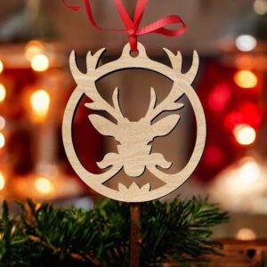 Intra απο ξύλο plywood 3mm-4mm πάχος – Χριστουγεννιάτικο στολίδι με κεφάλι ελαφιού 30x30 cm INTRAVECTRY-MY549774