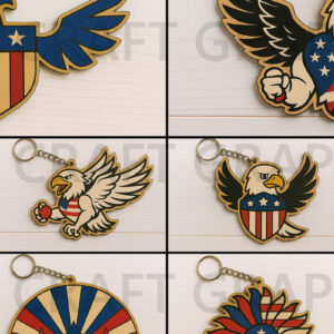 Intra απο ξύλο plywood 3mm-4mm πάχος Μπρελόκ American Flag Eagle Δίασταση 6x6 cm INTRAFABR-122668084
