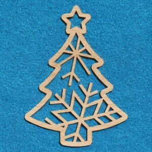 Intra απο ξύλο plywood 3mm-4mm πάχος – Χριστουγεννιάτικο δέντρο με αστέρια με στολίδι από νιφάδα χιονιού 12x15 cm INTRAVECTRY-MY552692
