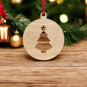 Intra απο ξύλο plywood 3mm-4mm πάχος – Χριστουγεννιάτικο δέντρο με αστέρι μπιχλιμπίδι 30x35 cm INTRAVECTRY-MY548149