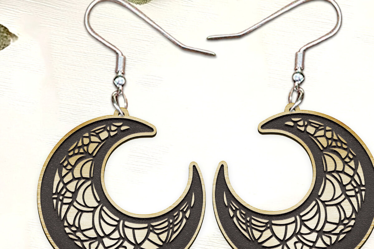 Intra απο ξύλο plywood 3mm-4mm πάχος Ουράνια Σκουλαρίκια. Σκουλαρίκια Moon Δίασταση 4x4 cm INTRAFABR-123567512