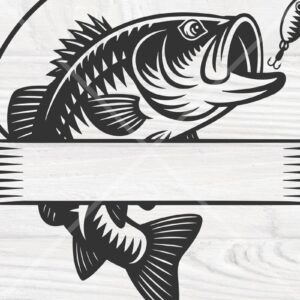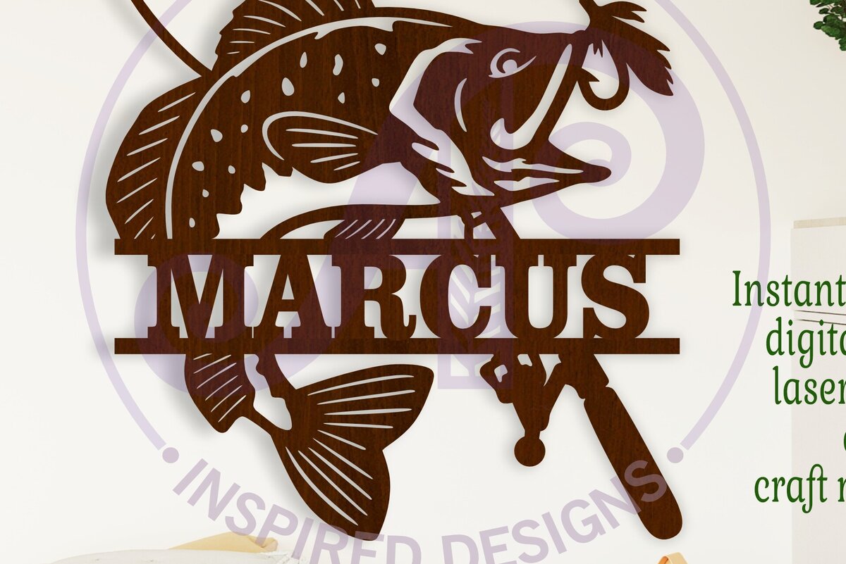 Intra απο ξύλο plywood 3mm-4mm πάχος Bass Fish Monogram – Jumping Hooked Δίασταση 30x20 cm INTRAFABR-125118616