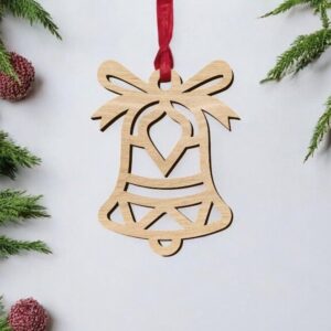 Intra απο ξύλο plywood 3mm-4mm πάχος – Χριστουγεννιάτικο Κουδούνι με Φιόγκο Στολίδι 15x20 cm INTRAVECTRY-MY550910