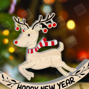 Intra απο ξύλο plywood 3mm-4mm πάχος – Χριστουγεννιάτικο στολίδι Rocking Reindeer Δίασταση 20x20 cm INTRAFABR-110201505