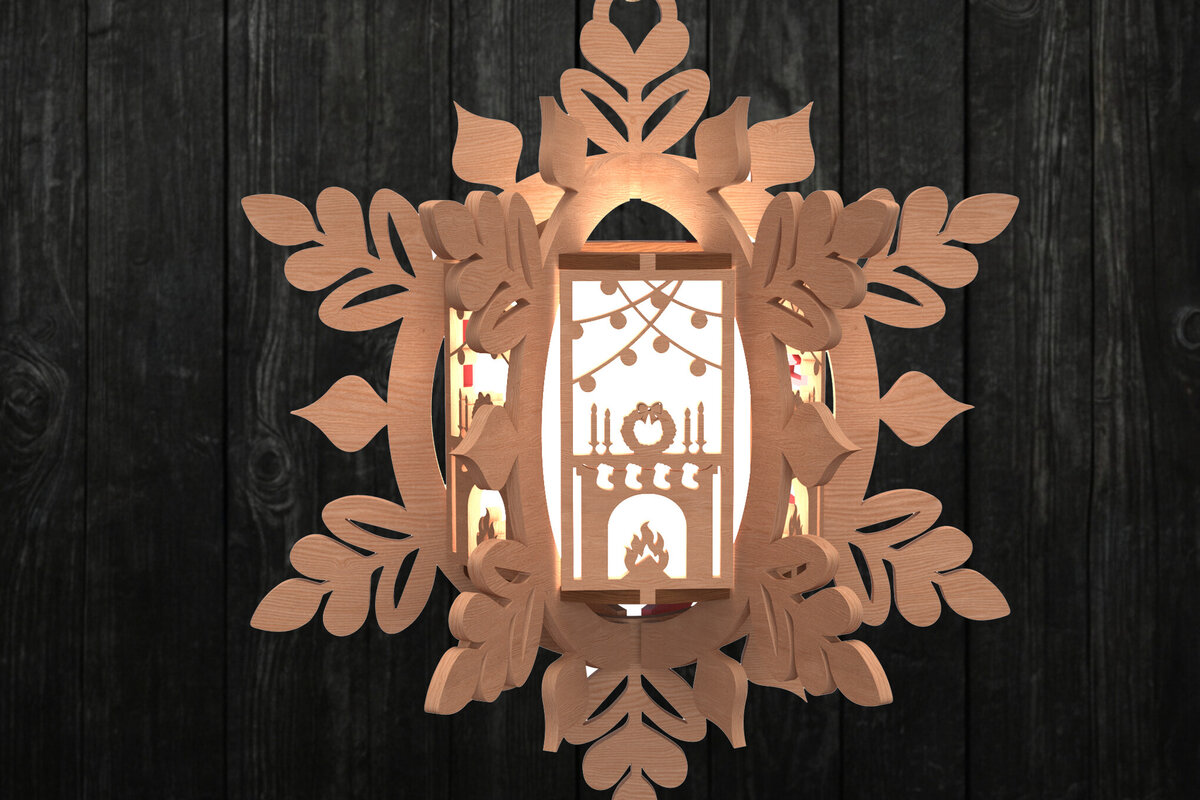 Intra απο ξύλο plywood 3mm-4mm πάχος φαναριού με χριστουγεννιάτικο νιφάδα χιονιού Δίασταση 30x20 cm INTRAFABR-109536788