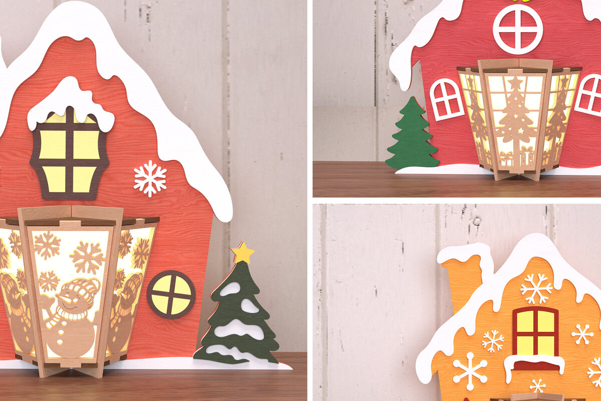 Intra απο ξύλο plywood 3mm-4mm πάχος φαναριών Χριστουγεννιάτικου σπιτιού Δίασταση 30x20 cm INTRAFABR-108902554
