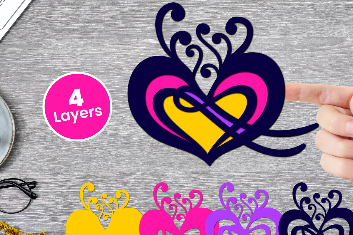 Intra απο ξύλο plywood 3mm-4mm πάχος Χαρτί Love Heart με 3D Layered, Δίασταση 12x12 cm INTRAFABR-125002451