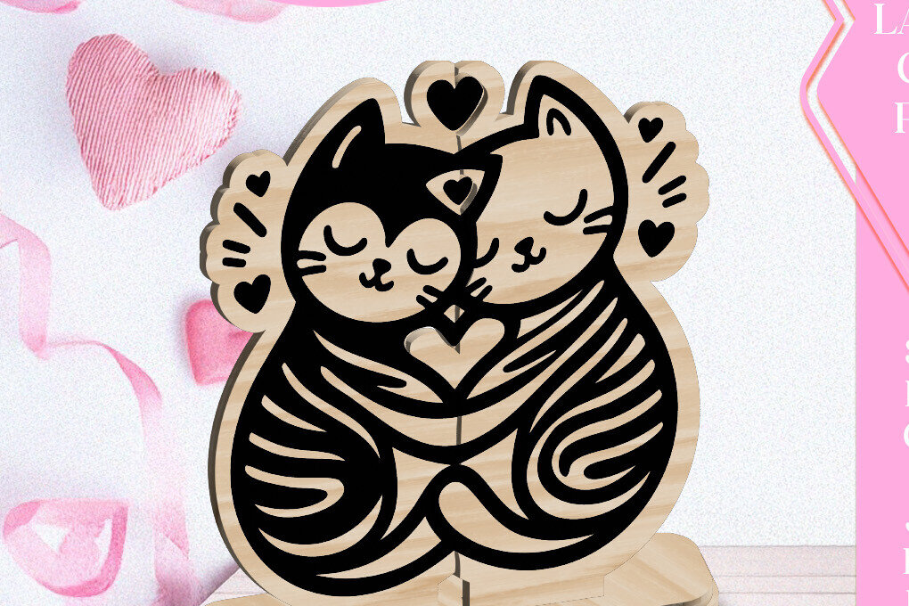 Intra απο ξύλο plywood 3mm-4mm πάχος Οι γάτες λατρεύουν το στολίδι του Αγίου Βαλεντίνου Κόψιμο με λέιζερ Δίασταση 3x3 cm INTRAFABR-113351473
