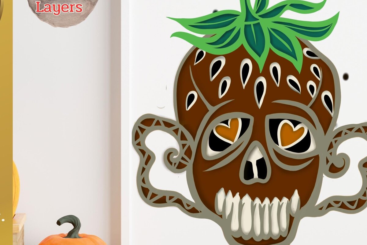 Intra απο ξύλο plywood 3mm-4mm πάχος Τρισδιάστατο κρανίο φρούτων αποκριών: φράουλα Δίασταση 2048x2048 cm INTRAFABR-77789313