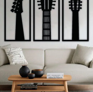 Intra απο ξύλο plywood 3mm-4mm πάχος 3 Κιθάρες Μουσική Ξύλινη Τέχνη τοίχου Δίασταση 40x40 cm INTRAFABR-70872717