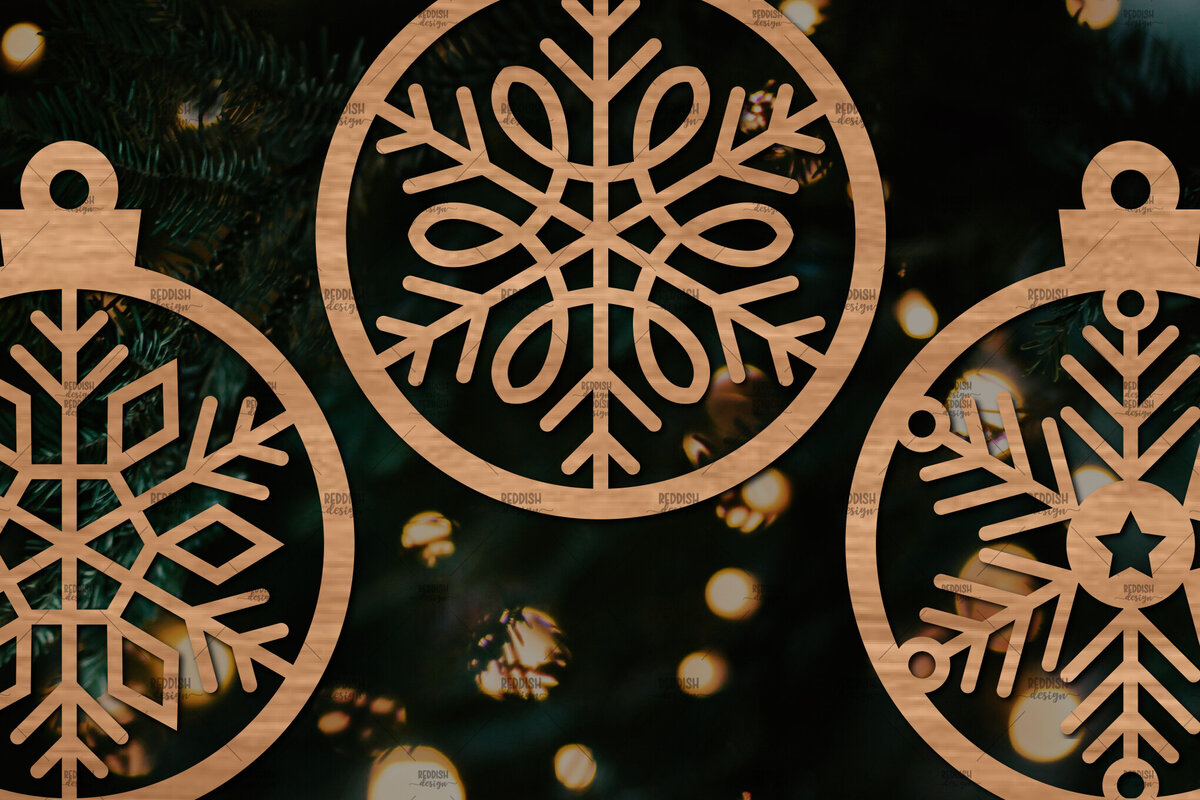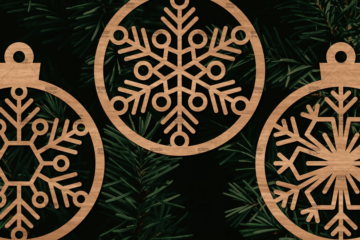 Intra απο ξύλο plywood 3mm-4mm πάχος 3 Στρογγυλό στολίδι με νιφάδα χιονιού Δίασταση 8x8 cm INTRAFABR-106186338