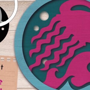 Intra απο ξύλο plywood 3mm-4mm πάχος 3D Layered Marine Wall Art, Jellyfish Δίασταση 40x40 cm INTRAFABR-70307212
