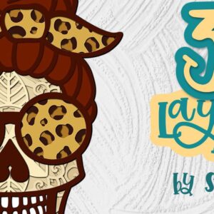 Intra απο ξύλο plywood 3mm-4mm πάχος 3D Layered Messy Bun Skull Mom Leopard Δίασταση 15x15 cm INTRAFABR-35434971